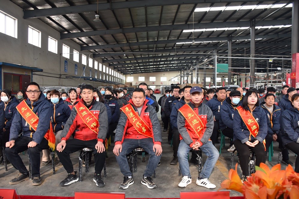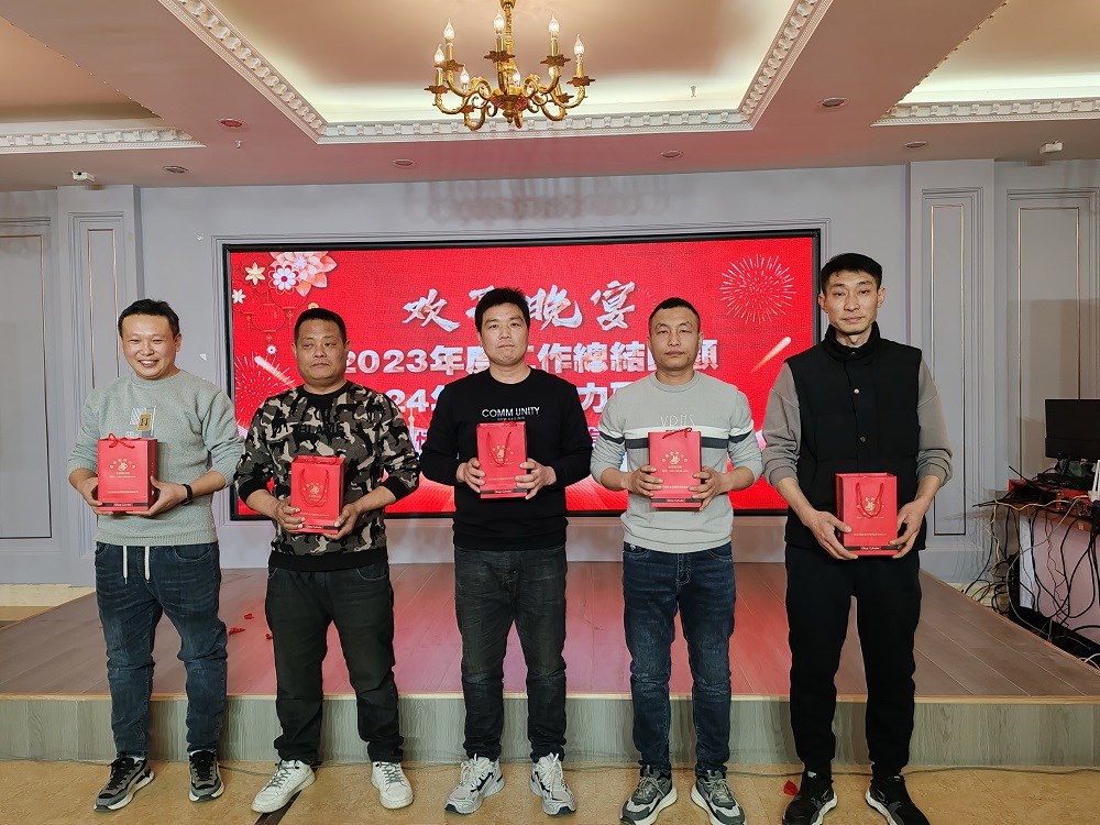 首先由行政辦宣讀會(huì)場(chǎng)紀(jì)律,然后回顧2023年公司發(fā)展歷程,總結(jié)過(guò)去一年我們?nèi)〉玫某煽?jī)與不足之處,展望美好2024。接下來(lái)是激動(dòng)人心的頒獎(jiǎng)表彰時(shí)刻,五位年度優(yōu)秀員工脫穎而出,由生產(chǎn)副總劉海峰與銷售副總郭文斌為他們頒獎(jiǎng),公司總經(jīng)理、黨支部書(shū)記陳文通上臺(tái)與其合影留念。