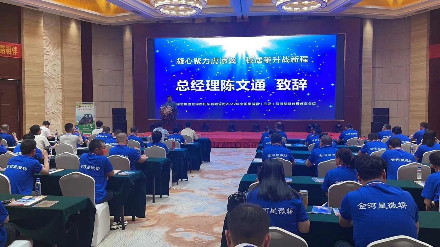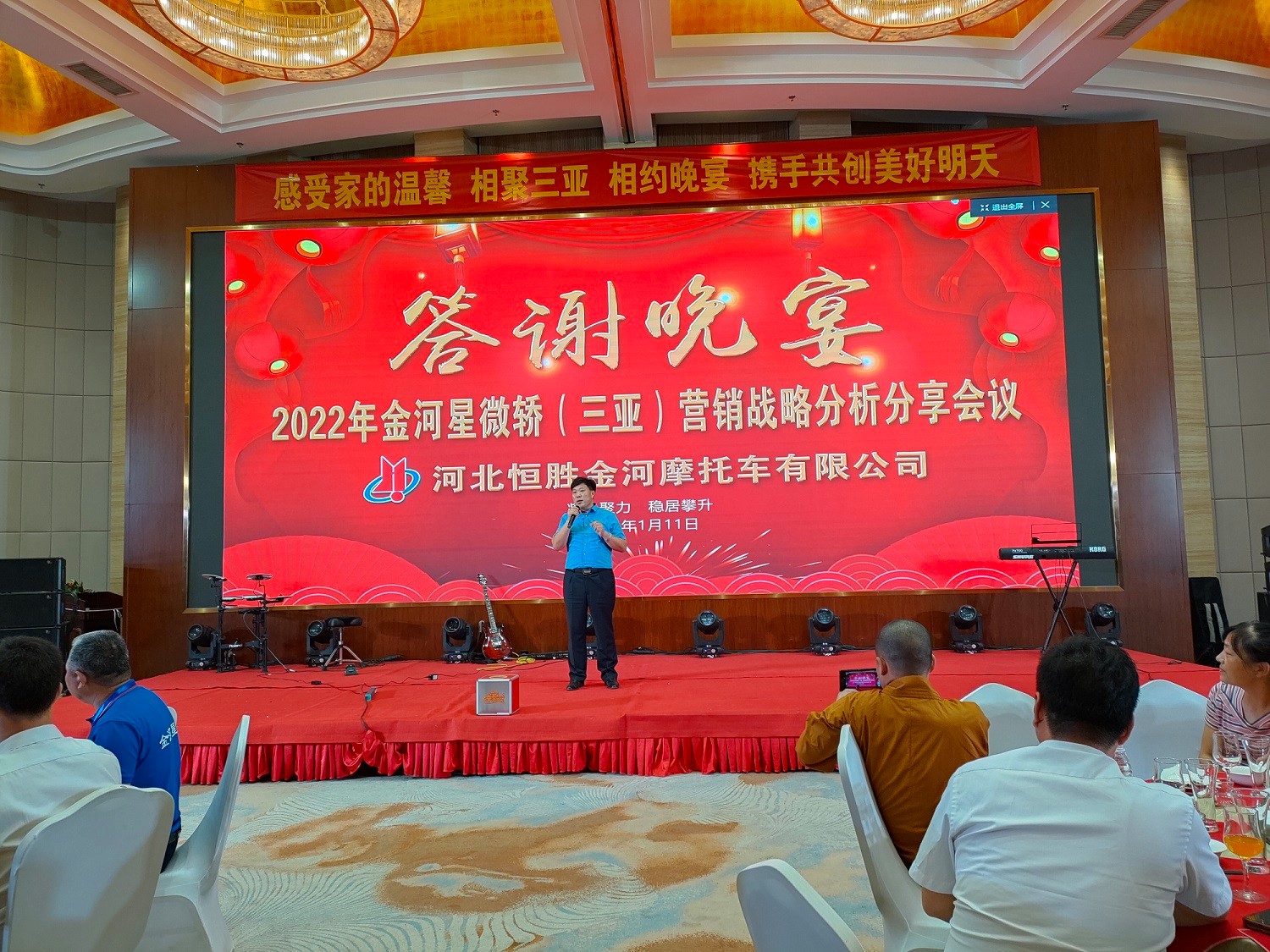 號(hào)角已吹響,揚(yáng)鞭在腳下,河北恒勝金河摩托車有限公司2022年金河星微轎(三亞)營(yíng)銷戰(zhàn)略分析分享會(huì)議在三亞陽(yáng)光大酒店隆重召開。從金河戰(zhàn)隊(duì)“金河發(fā)展,我的責(zé)任"洪亮的口號(hào)開啟會(huì)議模式。