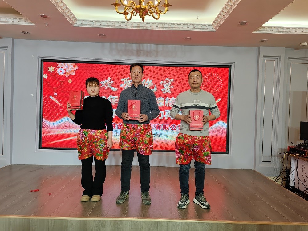 總結(jié)大會(huì)在洪亮的“金河發(fā)展,我的責(zé)任”中結(jié)束,陳總與主席臺(tái)高管中干祝愿所有金河員工及家人,身體健康,家庭幸福,龍年大吉,并深鞠一躬!春節(jié)禮品也由管理者發(fā)放到了每個(gè)員工手中,從員工臉上洋溢的笑容可以看到美好的2024年在向我們揮手。