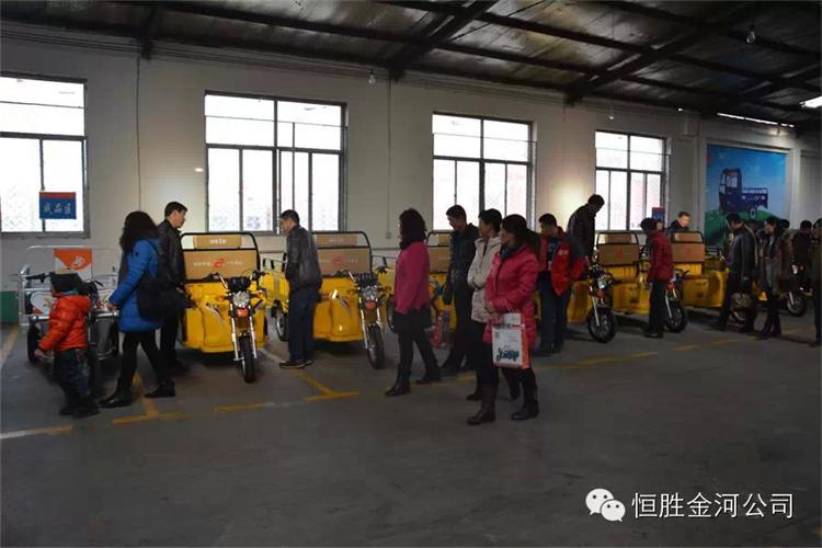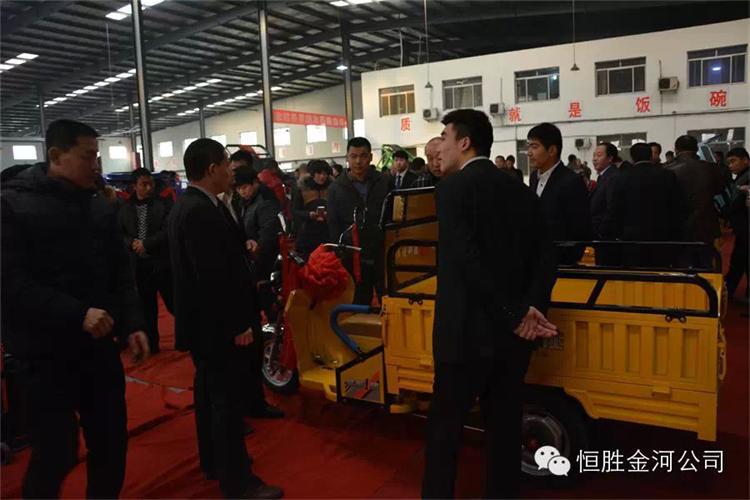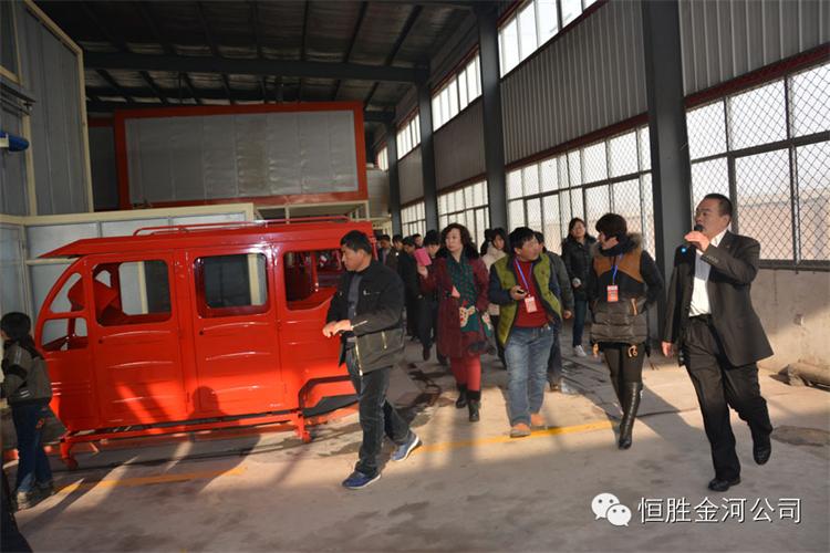 1月7日下午1點(diǎn),恒勝金河工作人員陪同與會經(jīng)銷商乘坐48座八輛通宇大巴,進(jìn)入公司參觀,一路上公安交警維持道路秩序,公司門口鑼鼓升天,樂隊齊奏歡迎曲,紅燈籠,彩旗高高掛起,金河公司滑翔機(jī)在上空猶如春晚小彩蝶自由旋轉(zhuǎn),美麗如畫,公司高管與政府領(lǐng)導(dǎo)陪同經(jīng)銷商先后參觀了車廂、車架、涂裝、污水處理站、電動、后橋、組裝、棚車、展廳等,每個展點(diǎn)都給經(jīng)銷商帶來非常震撼的感觀與驚喜!