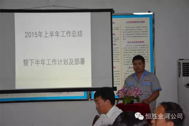 事后有總結(jié),工作有計(jì)劃,落實(shí)與部署。2015年7月5日金河公司召開上半年總結(jié)大會(huì),各部主管上臺(tái)述職,講述上半年工作中的得與失及下半年工作計(jì)劃與部署。公司總經(jīng)理要求下半年比拼管理,實(shí)干落地精神,戒驕戒躁,勇敢前行,強(qiáng)技能,講協(xié)作,推新品,拓市場(chǎng)!恒勝、金河星品牌必將震響中華大地,紅遍五洲四海!